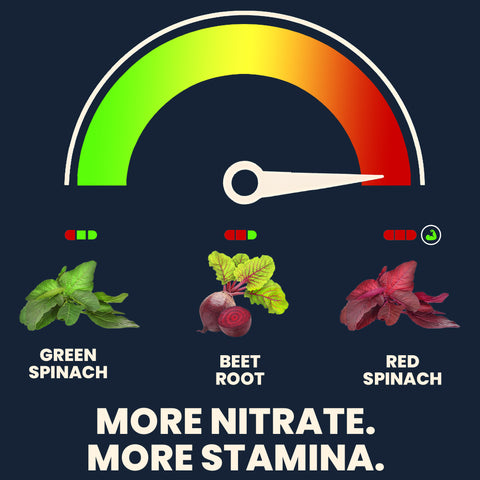 Powered by nutrient-rich red spinach extract, RS400 provides 400mg of naturally occurring plant nitrates in every serving—more than you’d typically get from beets and common leafy greens.